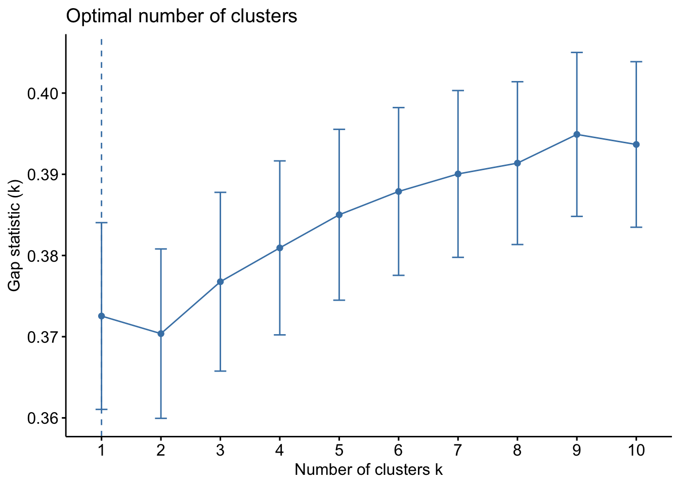 The WSS method, often referred to as the “elbow method,” helps to identify the point where the marginal gain in explanatory power diminishes significantly, indicating the optimal number of clusters. The silhouette method provides a measure of how similar an object is to its own cluster compared to other clusters. The Gap Statistic compares the total within intra-cluster variation for different numbers of clusters with their expected values under null reference distribution of the data.