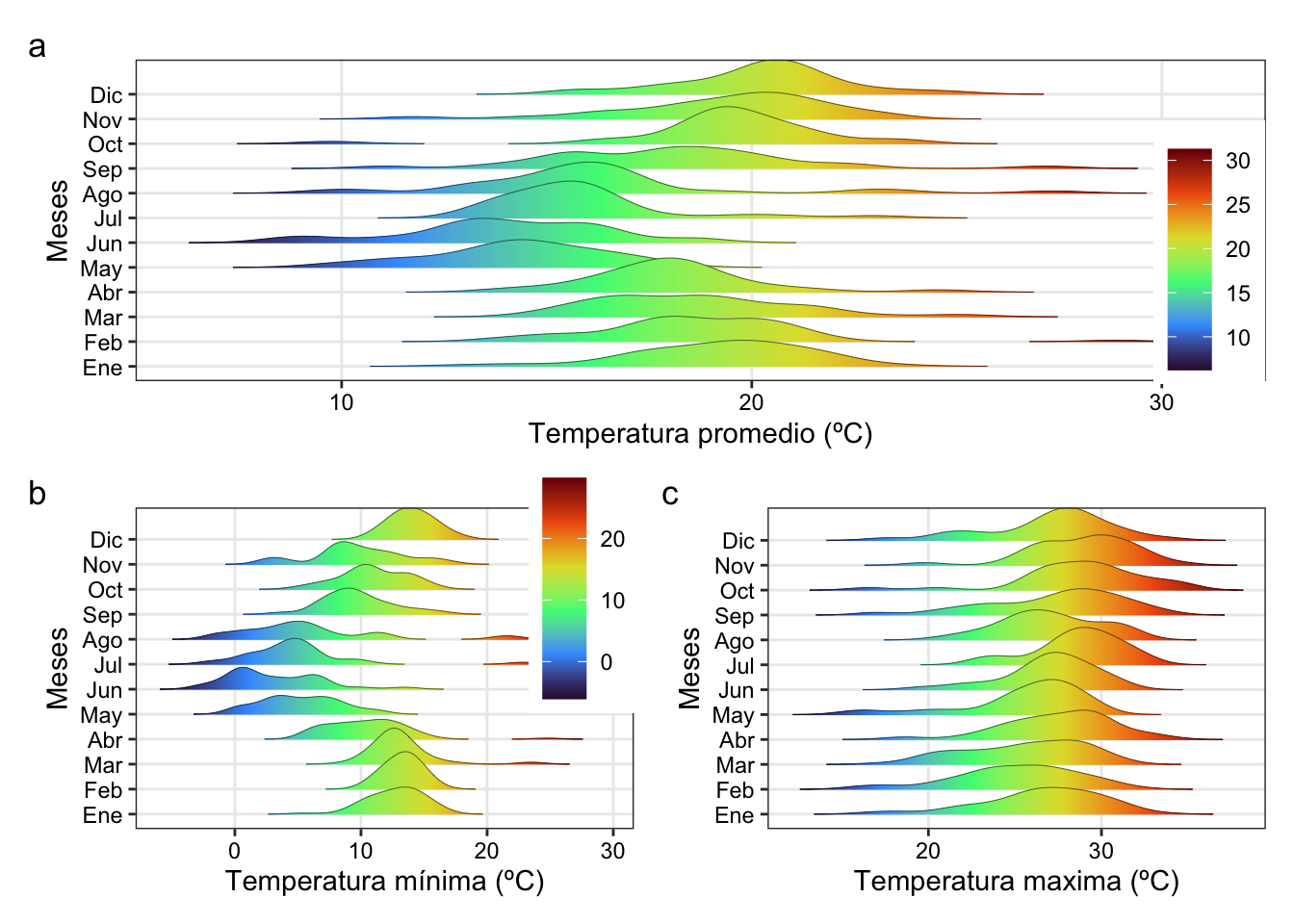 labs(x="Temperatura promedio (ºC)", y = "Meses")