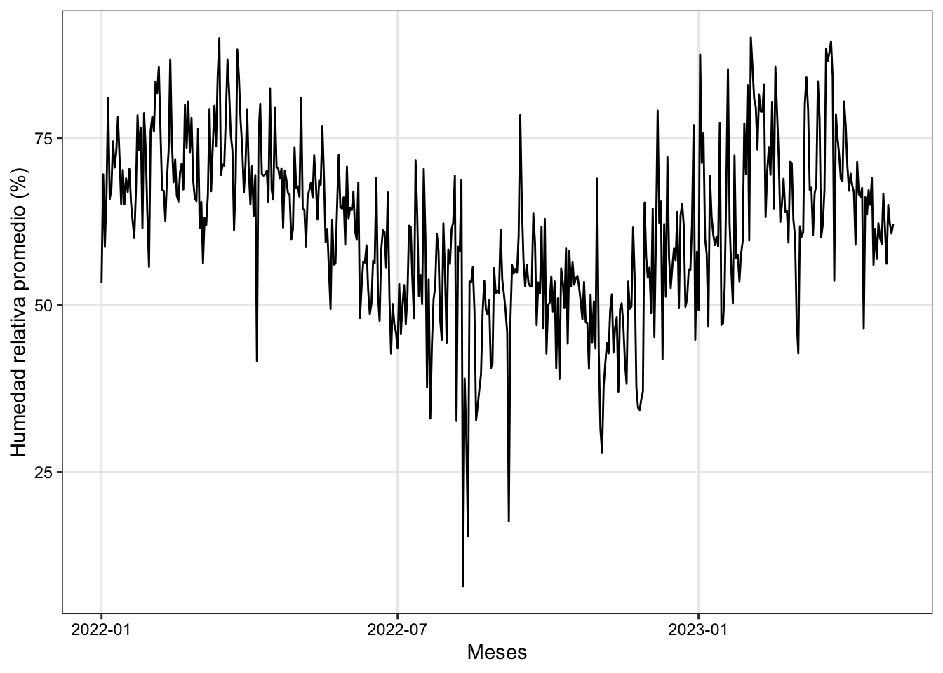 labs(x="Meses", y = "Humedad relativa promedio (%)")
